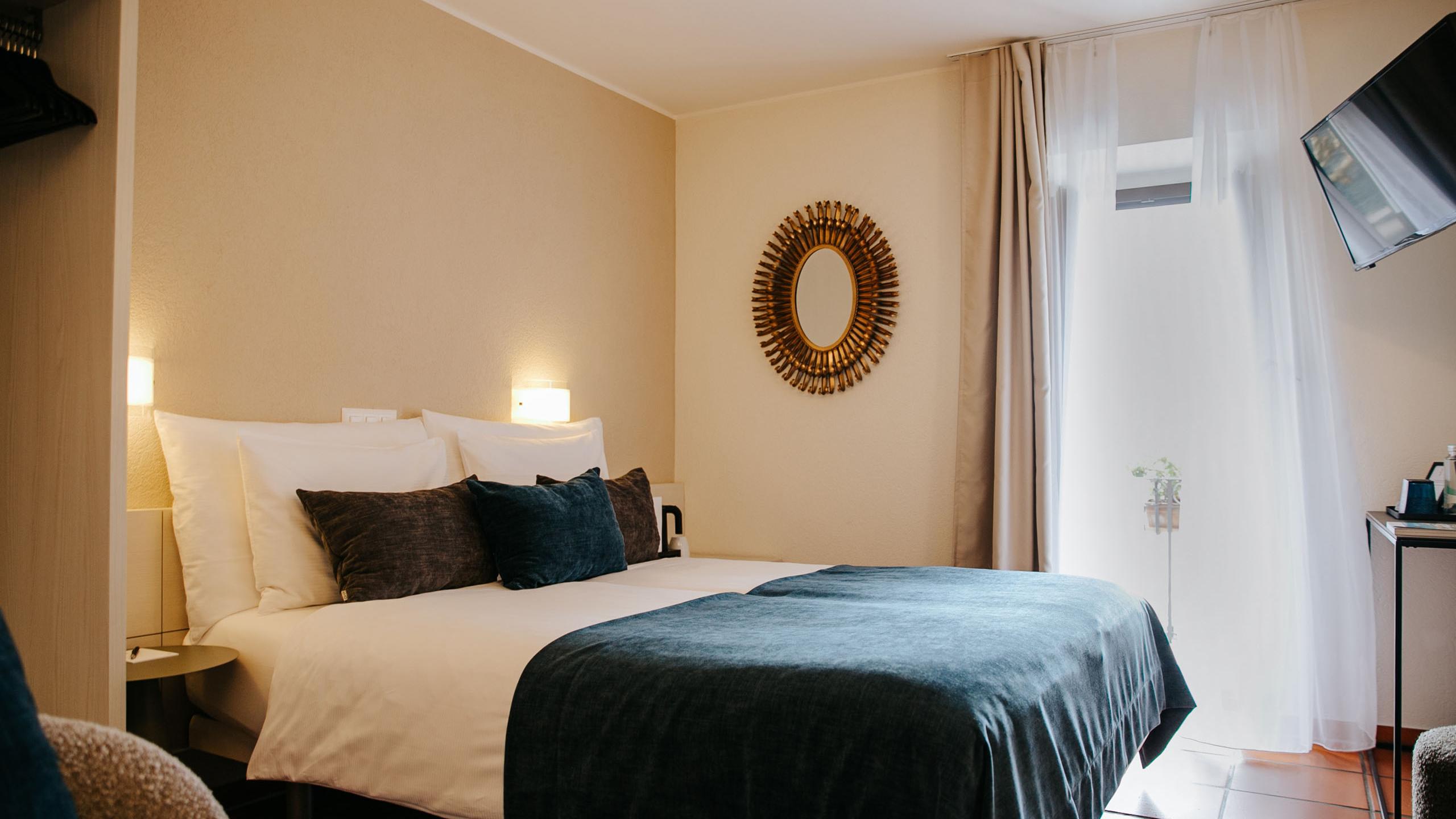 Doppelbett mit separaten Matratzen 160x190 cm | Dusche | WC | Föhn | Vanityset | Wasserkocher mit Teeauswahl | Safe | TV | Klimaanlage